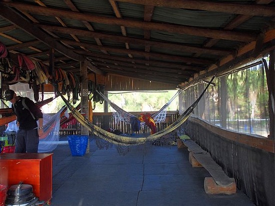 After an uncomfortable and very nerve-wracking journey along the track we finally arrived at our camp – the Pousada Santa Clara, where we were shown to our hammocks in a shared room at the top of a wooden hut. It was better than it sounds – the room was screened, and they even had a hot shower – and most importantly – a bar! The wine list was not up to much, but they did a wicked Caipirinha.