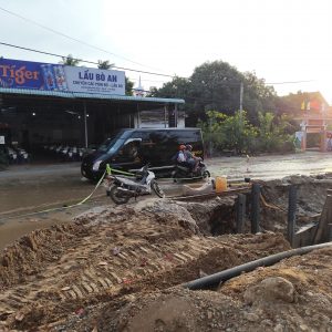 As our bus headed out of Dalat’s pine clad valley, tea plantations covered the hillsides as the road slowly wound its way south towards the coast. I say “road” but it became more of a “work in progress” as large chunks of it were in the process of being dug up for a huge widening and expansion project. This made for an incredibly bumpy journey – although the scenery was to die for (not literally, we hoped!).