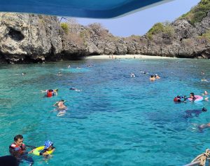 Although we felt quite lethargic, we booked ourselves on a boat trip to the islands of Koh Haa and Koh Roc, which we had visited before, but were renowned for their abundance of tropical fish and corals.  Being high season, we were packed like sardines on the boat, but the snorkelling was impressive  (that was until I managed to lose my snorkel!).